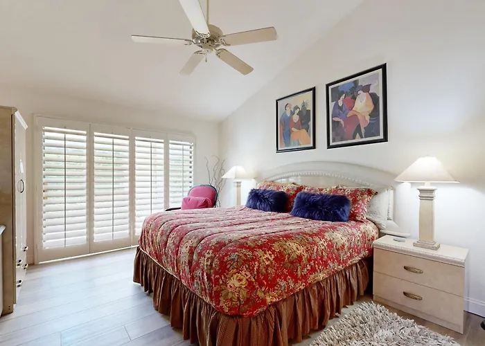 The 3-star La Quinta Vacations Rental, situated merely 5 minutes' walk from Old Town La Quinta Shopping Mall, entices guests with spa therapy, a terrace, and a shared lounge. Offering a heated swimming pool, the aparthotel is located in the old part of La Quinta, within 7 km of The Living Desert Zoo and Gardens.